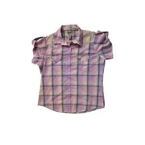 This Wrangler Wrancher plaid shirt in XL size is the perfect addition to any western enthusiast's wardrobe. With its pink color and lace fabric type, it's a great choice for a casual button-down shirt. The short sleeves and snap closure make it easy to wear, while the Western theme adds a touch of style to any outfit.
