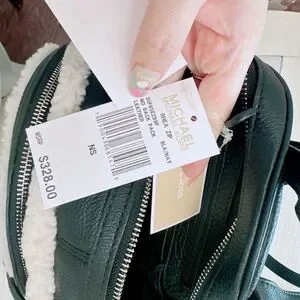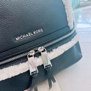 - MICHAEL KORS RHEA ZIP MEDIUM BACKPACK BLACK LEATHER NATURAL SHEARLING/NWT