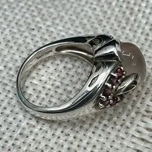 This eye-catching ring is perfect for collectors or anyone seeking a unique vintage statement piece. The ethereal glow of the moonstone and the rich purple gemstones create a striking combination, suitable for both everyday elegance and special occasions.