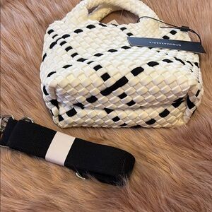 BCBGMAXAZRIA White and Black Woven Handbag