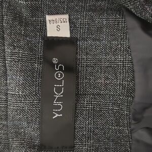 Yunclos long sleeve gray double breasted blazer with front pockets. Lined.