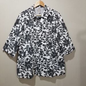 Chico's Jacket Size 3P XL Petite Black & White Embossed Floral 3/4 Sleeve Lined