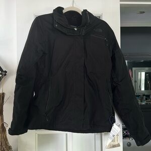 North face women’s size medium ski snowboard jacket I wore it on several ski trips and it keeps you plenty warm with just base layers under. Has detachable hood. Good used condition waterproof and warm