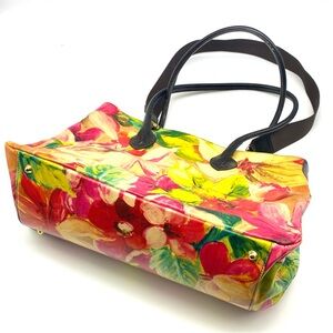 MAURIZIO TAIUTI FLORAL PAINTING MURAL LEATHER ITALY LARGE SHOULDER TOTE HAND BAG