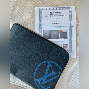 Gorgeous men’s black leather with blue ‘LV’ monogram