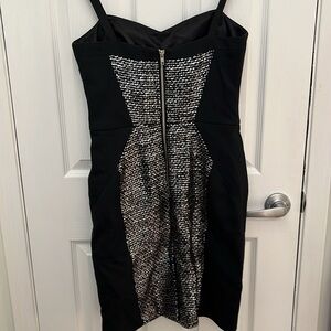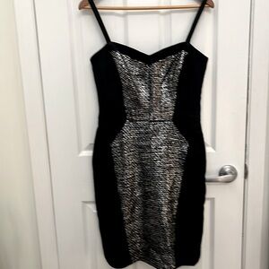 Gorgeous Black Dress with silver metallic design , Fully Lined Zipper down the back. Size 10
