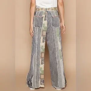 Step into a world of vibrant style with POL’s Boho Patchwork Wide-Leg Jeans. These jeans are a delightful blend of comfort and eclectic design, perfect for those who love to make a statement