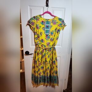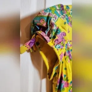 60s Vintage The Lilly Lilly Pulitzer Yellow Fit & Flare Belted Dress Size S-M puff sleeves