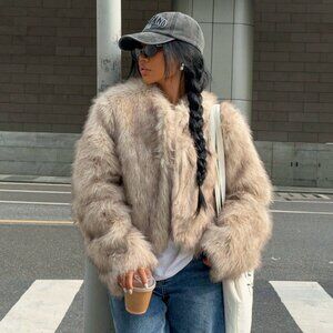 Khaki Casual Women's Long Sleeve Fluffy Jacket