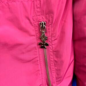 Pink perfection for those breezy days! 💖✨ Excellent condition. Both functional and stylish, ideal for someone looking to add a pop of color to their wardrobe. Lightweight, but also fully lined. The jacket has a wide, folded collar that adds a fashionable touch. It can be adjusted using the drawstrings, which are adorned with metallic beads for added flair. Lightweight perfect for fall, spring, even summer. Two vertical zippered pockets are positioned on the front, providing both style and practicality, with adorable silver Betsey pull tags. The zippers are silver, complementing the overall design. The sleeves are long, providing full arm coverage. Cute zipper pocket on the left sleeve with the pretty flower looking pull, adding a subtle detail to the jacket. The jacket has a slightly tailored fit, with an adjustable waist that can be cinched using the drawstrings, enhancing the silhouette. Vibrant pink color makes it eye-catching and adds a cheerful touch, suitable for casual outings. Approximate measurements in inches when laid flat: shoulders 16 across, chest 20 across pit to pit, waist 18.5 pulled full flat, full length 26, sleeves 25 long. ❤︎Shop with confidence! 5 ✰✰✰✰✰ seller, on over 5000 sales across platforms. ‘Fast Shipper!'