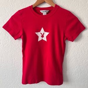 Playboy 2000s Red Star Iconic Short Sleeve Bunny Top