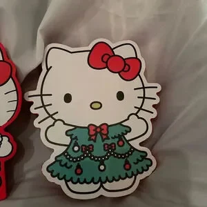Features Hello Kitty in Santa suit and as a Christmas tree