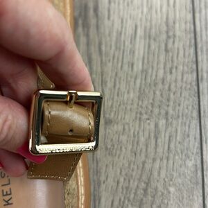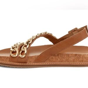 NWOT New Kelsi Dagger Brooklyn Script Slingback Sandals Tan Gold Chain Size 9