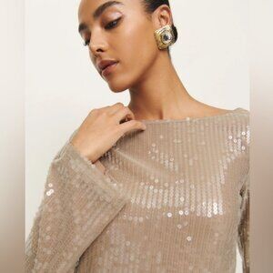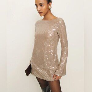 NWT Reformation Sereia Mini Dress in Champagne Sequin Long Sleeve | size S