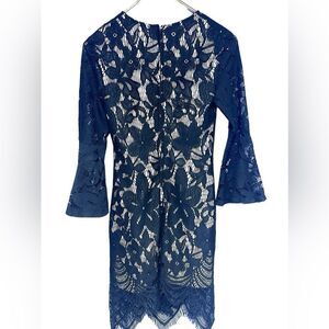Black and Gold Lace Dress With Lace 3/4 Bell Sleeve New With Tags XS