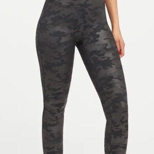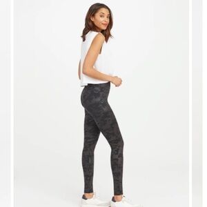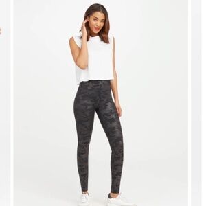 $98 Spanx Faux Leather Camo Leggings XS Black on gray