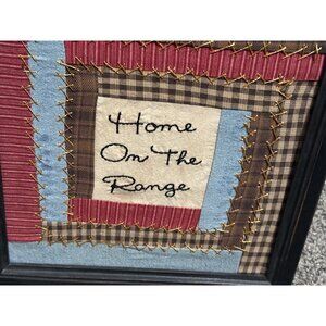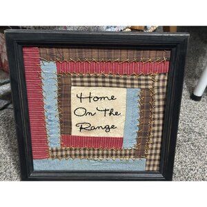 Framed Quilted Patchwork Wall Art Home On The Range 12" Square ...distressed aged look...not old just made to look it...see all pics...great for your farmhouse country ranch home decor...no glass in frame