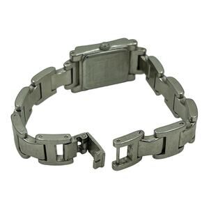 Vintage Silvertone Nine West bracelet wristwatch with quartz movement. Watch is in good condition. No scratches on crystal. Stainless steel case back has multiple scratches. Please see all photos.