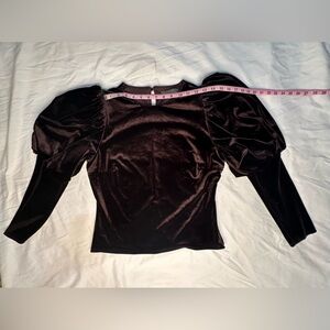 Anthropologie Sunday in Brooklyn Velvet Puff Sleeve Top Deep Plum Purple Long Sleeve Vintage-Inspired Romantic Glam Fitted Blouse Size M