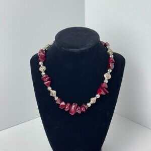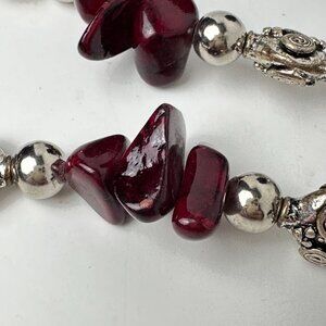 I Silver Red Garnet Beaded Necklace 7.5" Toggle Clasp Fashion Jewelry