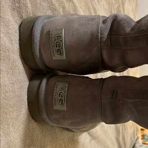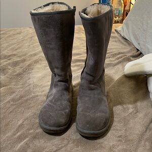 Cozy gray winter boots with plush lining. Perfect for cold weather. Durable and stylish.Beautiful gray color with cream colored fleece lining. Only work twice and never exposed to rain or snow. Boots have been treated.