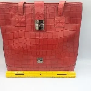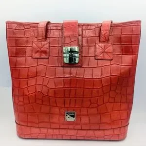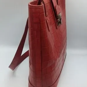 DOONEY & BOURKE Red Leather Vintage Embossed Croc Tote Shoulder Bag USA