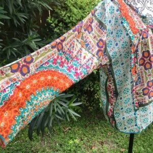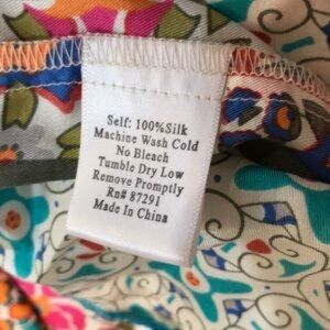 Gorgeous Johnny Was Blouse. Size M with measurements of Bust (armpit to armpit): 23”, Length (shoulder to hem): 25” and Width (across the bottom: 23.5”. 100% Silk. Ruffle detail throughout on beautiful patterned tunic. Long sleeves. Excellent pre-owned condition. No rips, tears, or stains.