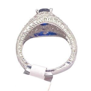- womenswear Silver tone oval blue crystal with clear surrounding crystals birthstone ring