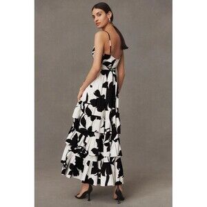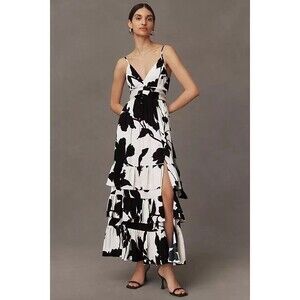 Anthropologie Hutch Guthrie Sleeveless Floral V-Neck Slit Satin Maxi Dress Sz 8