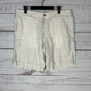 J Crew Shorts Mens 100% Linen Chino Sz 35 9" Inseam Ivory Casual Outdoor Summer