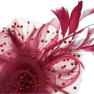 Package: 1 Burgundy Fasicnator Hat. Size: 7 inch diameter Flower.