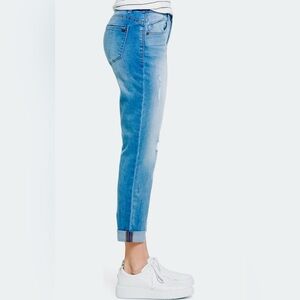 Lovingly pre worn stylish and comfortable blue denim jeans. These jeans offer a flattering fit and a classic look.