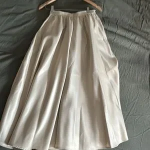 New champagne, gold satin skirt. Dress up or wear with sneakers. Zipper in back, with pockets Perfect statement piece for your wardrobe. Purchased at a boutique in La Jolla.
