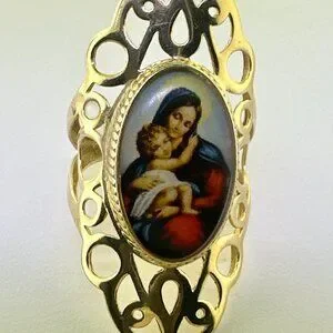 Vintage 14K Yellow Gold Madonna and Child Ring Size 8.5-5.61g