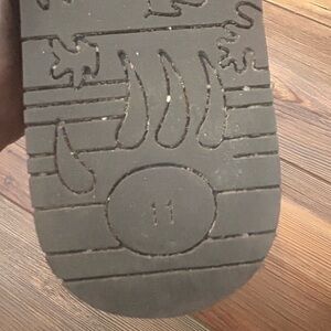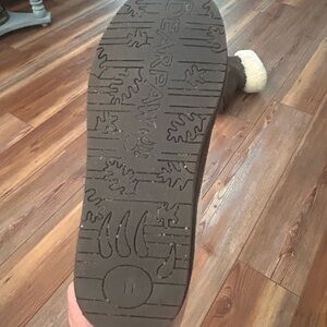 Very cute, brown with fur, with buckle look on side . Veryry good shape, suede look with off white fur.