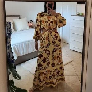 !!! Sale !! No Offer!! Farm Rio x Anthropologie Long-Sleeve Cutout Maxi Dress