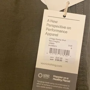 Women’s Vuori vintage, ripstop, short dark, oregano, size small