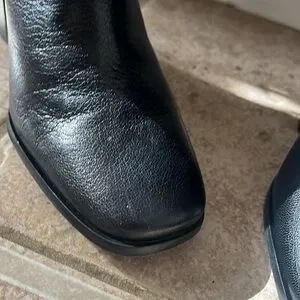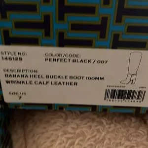 New Tory Burch black knee-high gold buckle boots. Worn once. Includes dust bag and box. Size 7 with banana heel and wrinkled calf leather