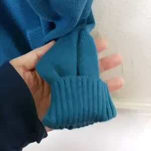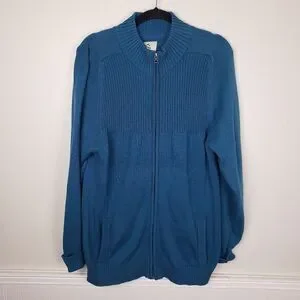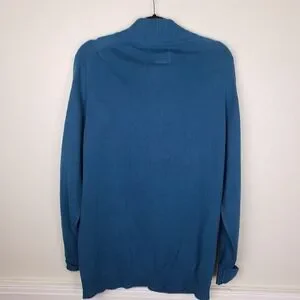 Women's Blue Knitted Cotton Long Tunic Zip Up Cold Weather Jacket Size XL