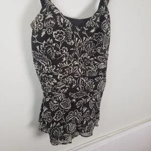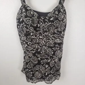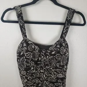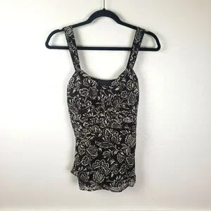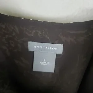 Women's Ann Taylor Brown Chiffon Floral Ruched Business Casual Attire Size 02