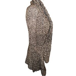 Bunched up neckline to bottom open hem , almost a cowl neck style look