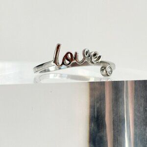 Sterling Silver Scripted "Love" Bypass Shank Vintage CZ Ring - sz 7.25