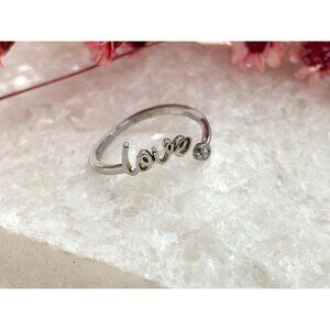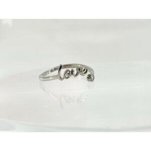 Lovely sterling silver vintage "Love" ring. The shank is straight style with a cubic zirconia round cut stone. The shank is sort of bypass style. Stamped as 925 / sterling and tested positive as such. Such a lovely ring, would be such a gift for someone you love.