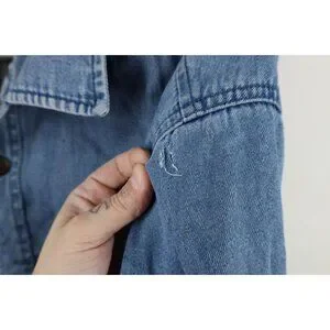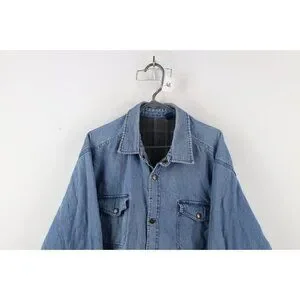 Vtg 90s Streetwear Mens XL Faded Flannel Lined Denim Jean Button Shirt Jacket