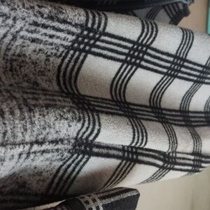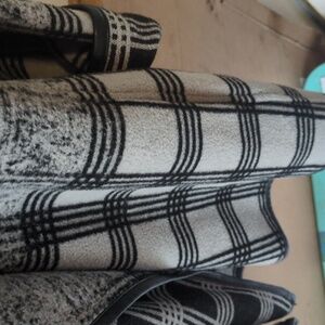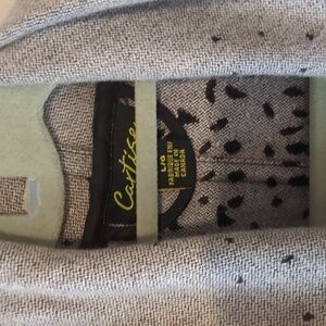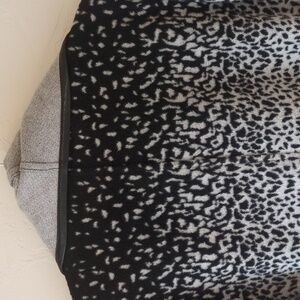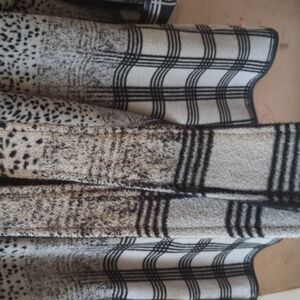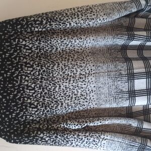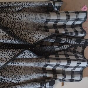 long sleeves, open front sweater coat, two front pockets, no holes or stains, large, black and gray multi