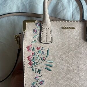 cross grain leather, light pink color w flower embroidery, gold hardware…great condition!