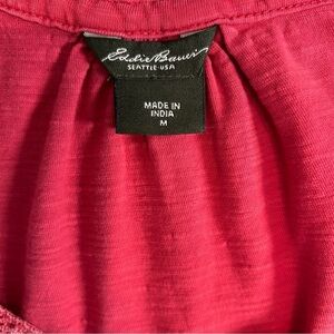 Eddie Bauer Women's Size M Soft Red Embroidered Keyhole Neck Short Sleeve Top