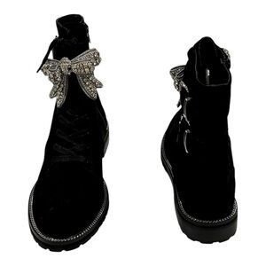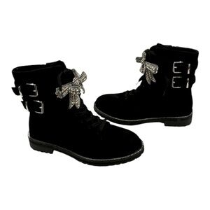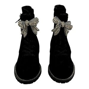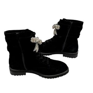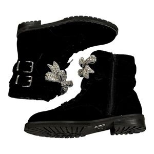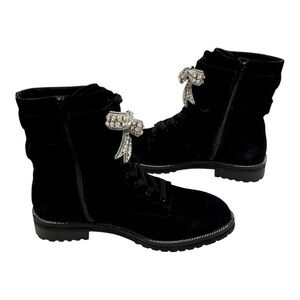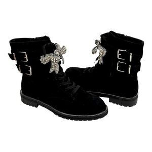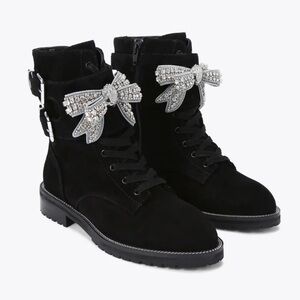 KURT GEIGER Sutton Bow Boot Black Suede Crystal Eagle Bow