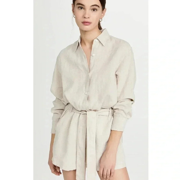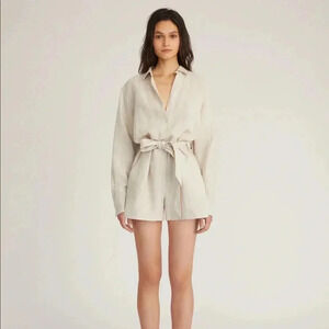 MARISSA WEBB NWT Rowan Linen Button Down Romper Tie Waist Flax Beige 4