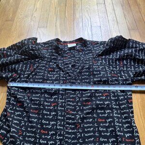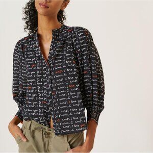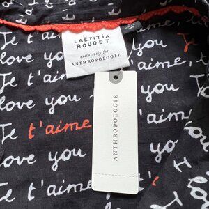 Anthropologie Laetitia Rouget Sz L Black Motif I Love You Puff Sleeve Blouse NWT